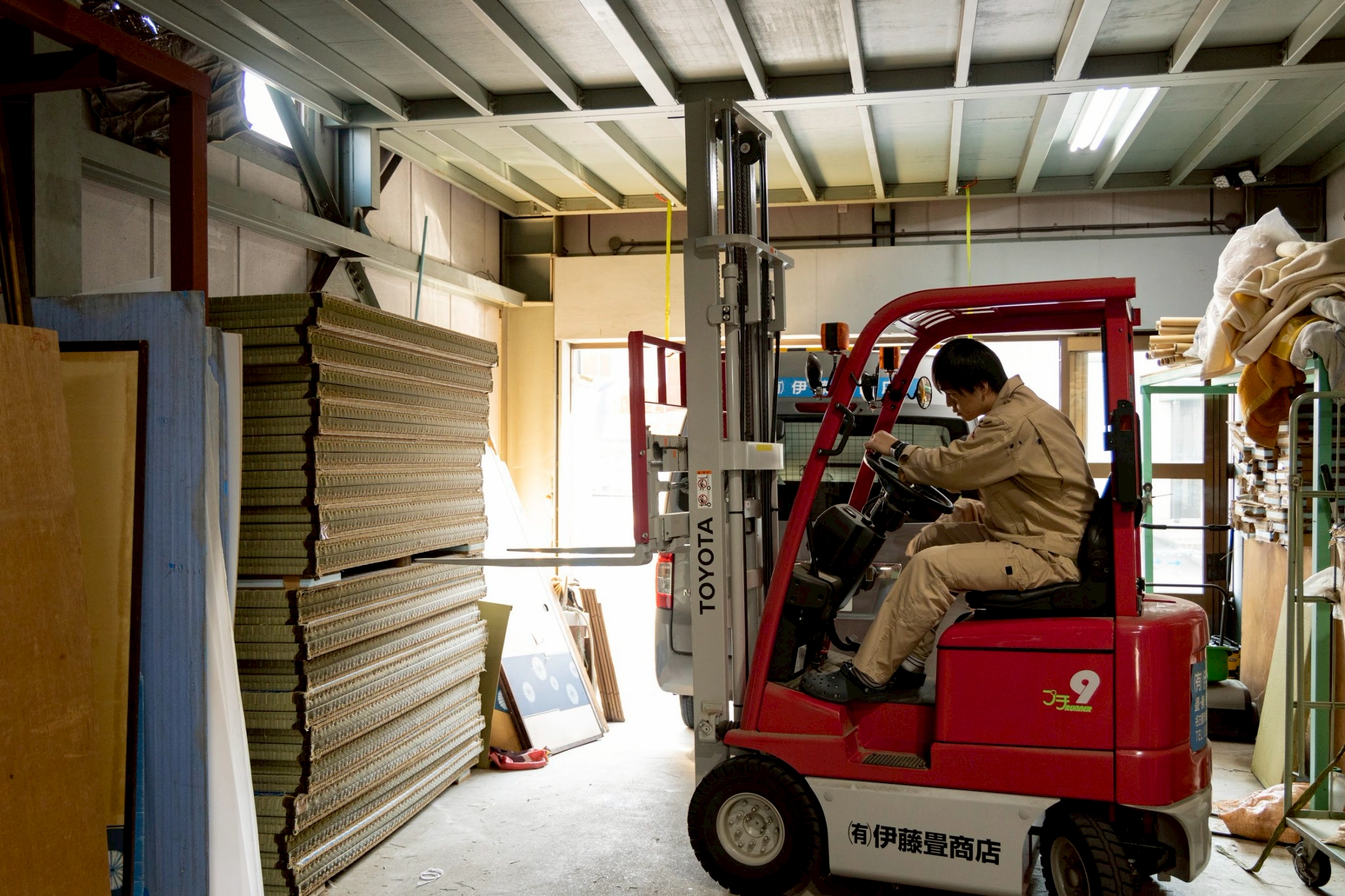 創業当初はリヤカーで個人宅に畳を届けるような、完全な個人相手の商売でした。父が20歳頃に戻ってきてからは、襖や内装も手がけるようになり、業務が多角化。その頃には祖父が畳製造を半自動化していたこともあり、大量生産体制を確立し、官公庁向けの仕事へと大きく舵を切りました。官公庁の畳屋内装工事を一手に担うようになり、以後40年ほど官公庁向けが売上の大半を占めていました。